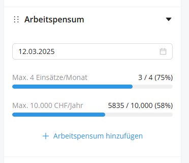 Klicken Sie auf "Arbeitspensum hinzufügen" um ein Sollarbeitszeitprofil zu hinterlegen.