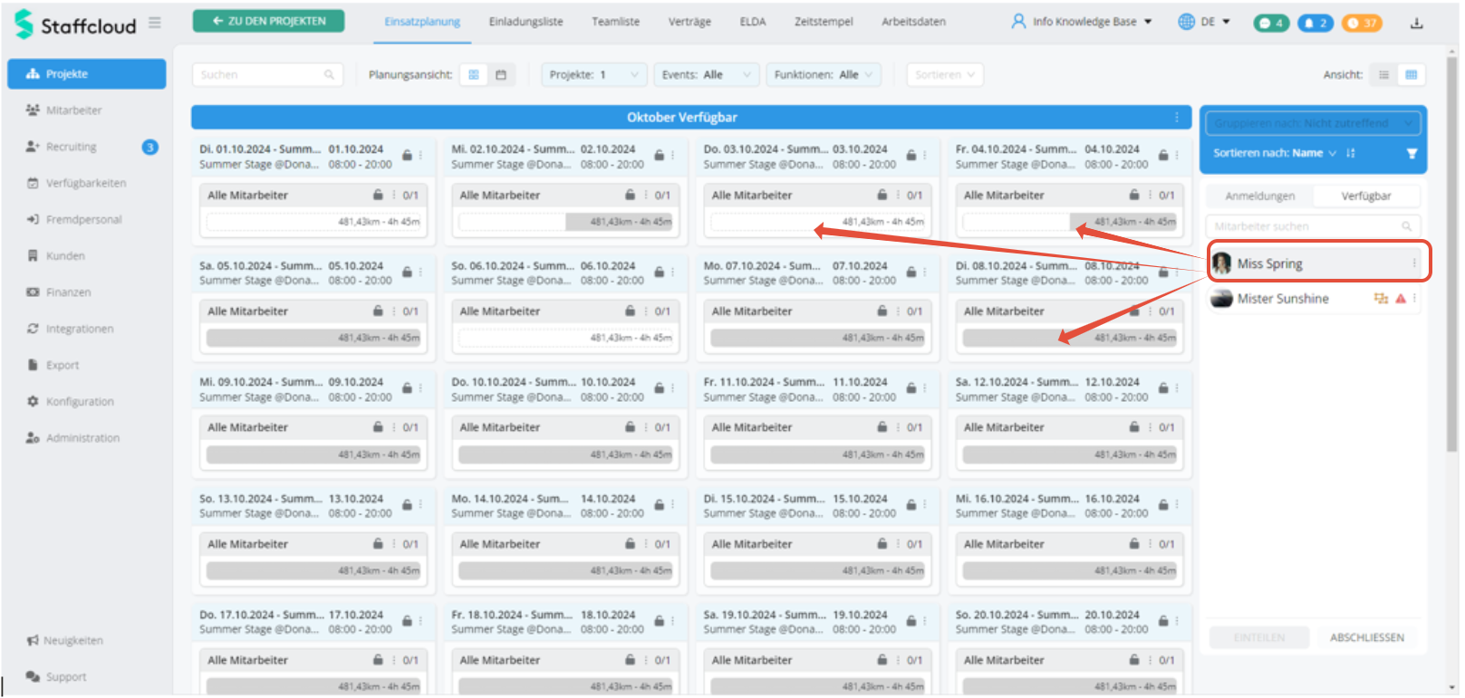 Verfügbarkeiten für Mitarbeitende eintragen