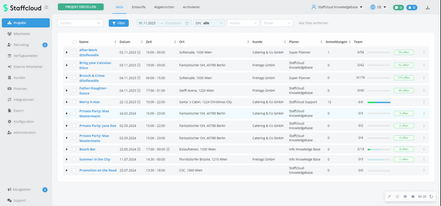 Nach dem Klick auf "MA automatisch einladen" wird der Planer auf die Projektübersicht geleitet. Sobald die automatischen Einladungen im Hintergrund erfolgreich verarbeitet wurden, wird der Planer mit einer Meldung im rechten Bildschirmbereich informiert, wie viele Mitarbeiter:innen eingeladen wurden.