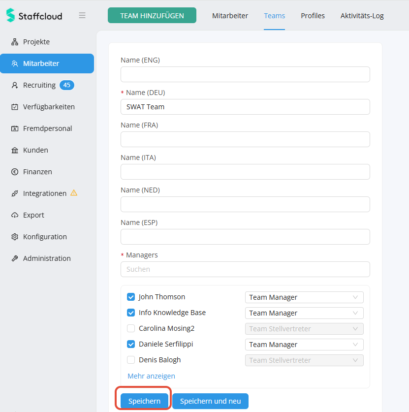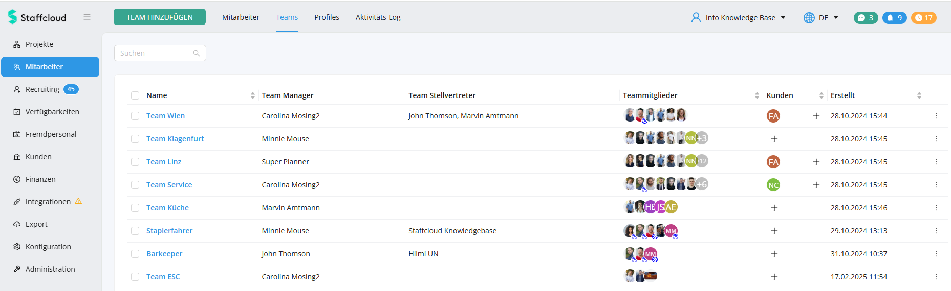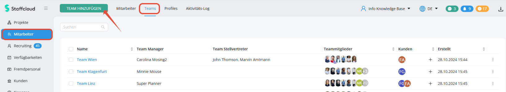 - Navigieren Sie zu Mitarbeiter > Teams.
