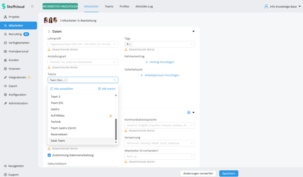 - Wählen Sie einen oder auch mehrere Mitarbeitende zur Bearbeitung aus