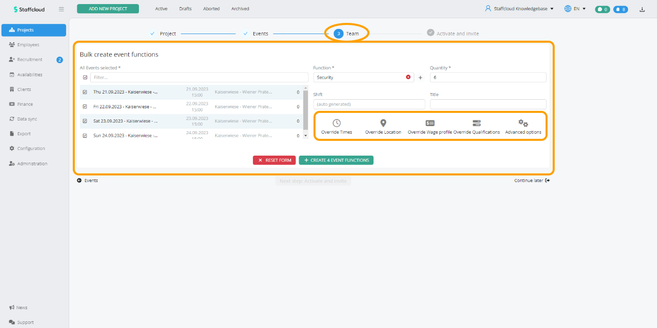 By selecting "Activate and auto invite", all qualified employees will be atomatically invited to matching functions.
